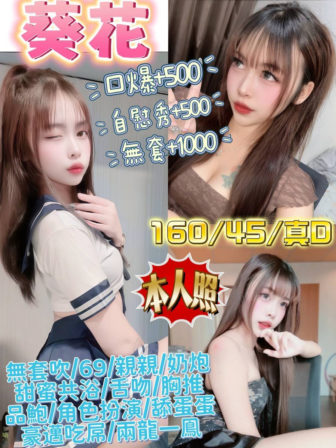 👍項目:無套吹/甜蜜共浴/舒壓按摩/胸推/屁推/69/品鮑/奶炮/親親/舔蛋/深喉嚨/角色扮演/舌吻