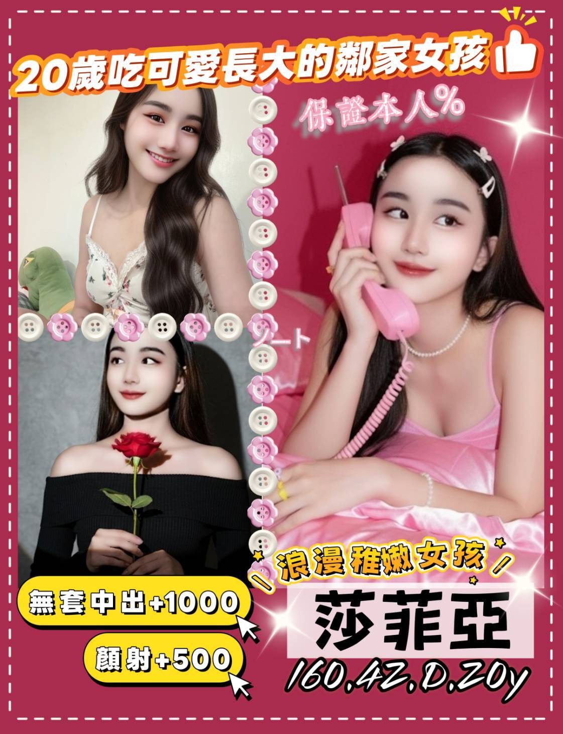 泰國🇹🇭清純派小美女,粉嫩嫩毫無瑕疵,纖瘦無贅肉,迷人電眼魅力十足、嬌羞模樣真令人心動,天生敏感體質,一進入身體就止不住的顫抖令人瘋狂,氣質超好,態度有禮貌,,歡迎各位哥哥前來嘗鮮唷!!