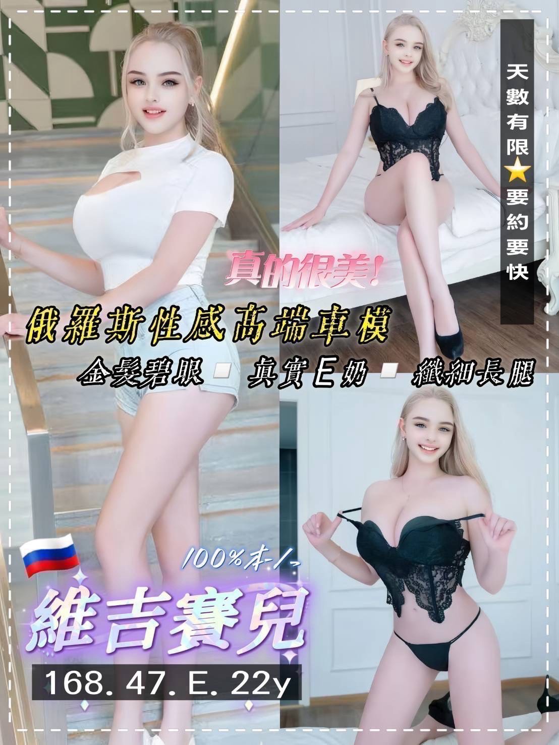 主打➡️俄羅斯SS+級頂級車模美女,初次抵台,極致S曲線身材,讓你無法自拔,緊實小蜜臀猶如電動小馬達,一發不可收拾,想體驗的哥哥們快來預約喲!!